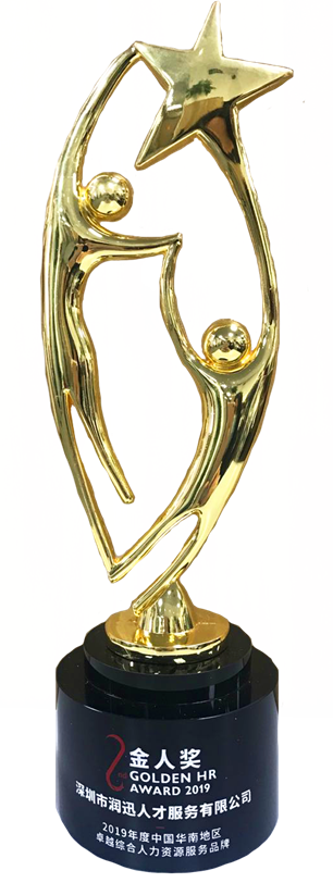 (图为:“2019年度中国华南地区卓越综合人力资源服务品牌”奖杯)