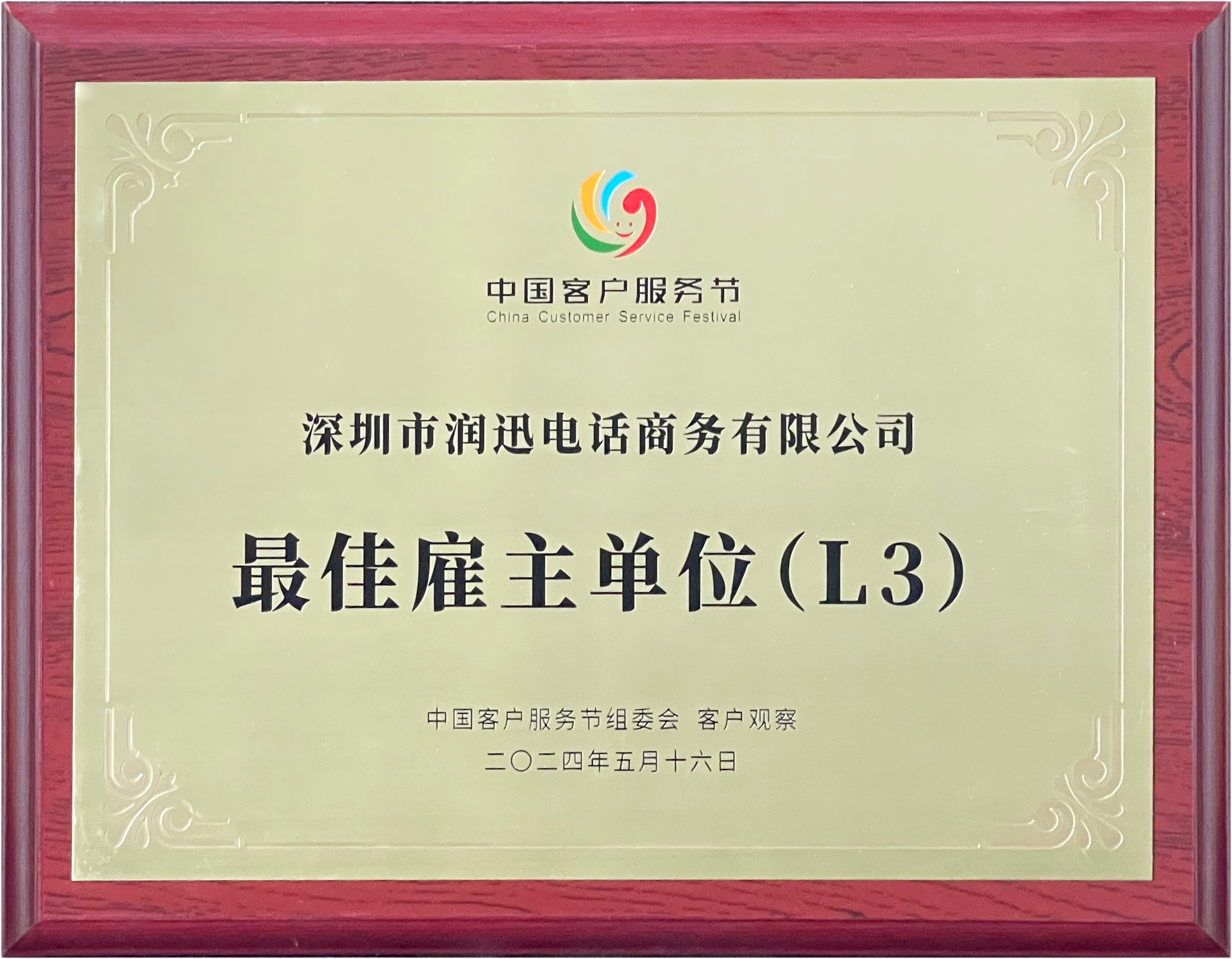 (润迅获颁“2024年中国客服服务节最佳雇主单位” )