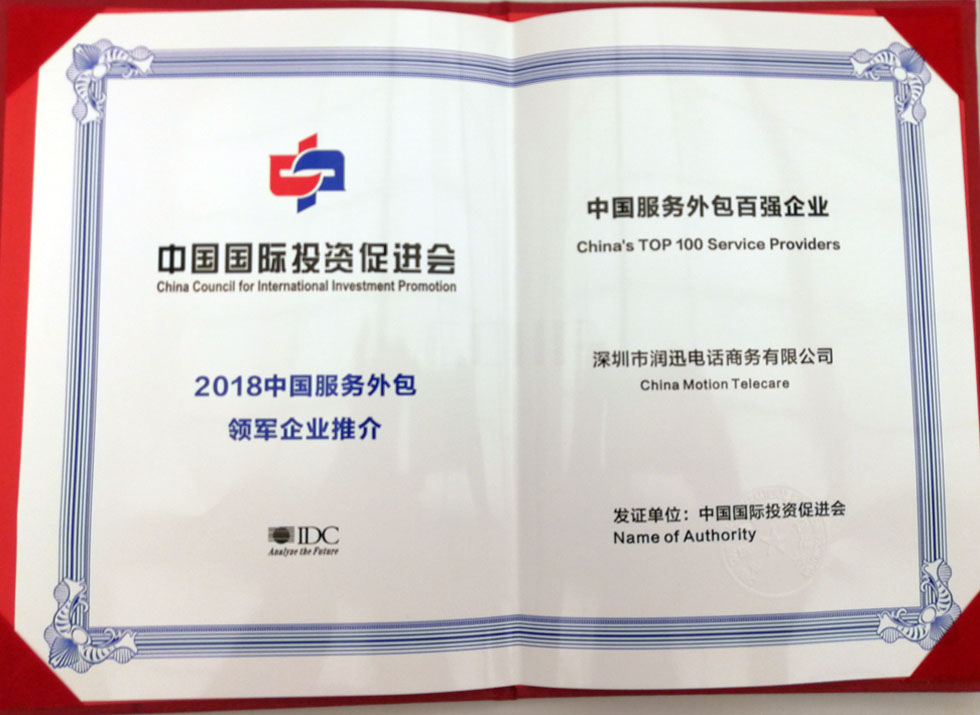 润迅公司作为外包服务行业的杰出代表企业之一,凭借优质的产品、一流的服务以及良好的市场口碑脱颖而出,成功入选“2018年度中国服务外包客户中心行业领军企业”,并荣膺“中国服务外包百强企业”奖,这不仅是业界对润迅行业影响力的高度认可,更是对润迅品牌价值的极大肯定,并将鼓舞润迅公司在服务外包行业砥砺奋进,扬帆远航。